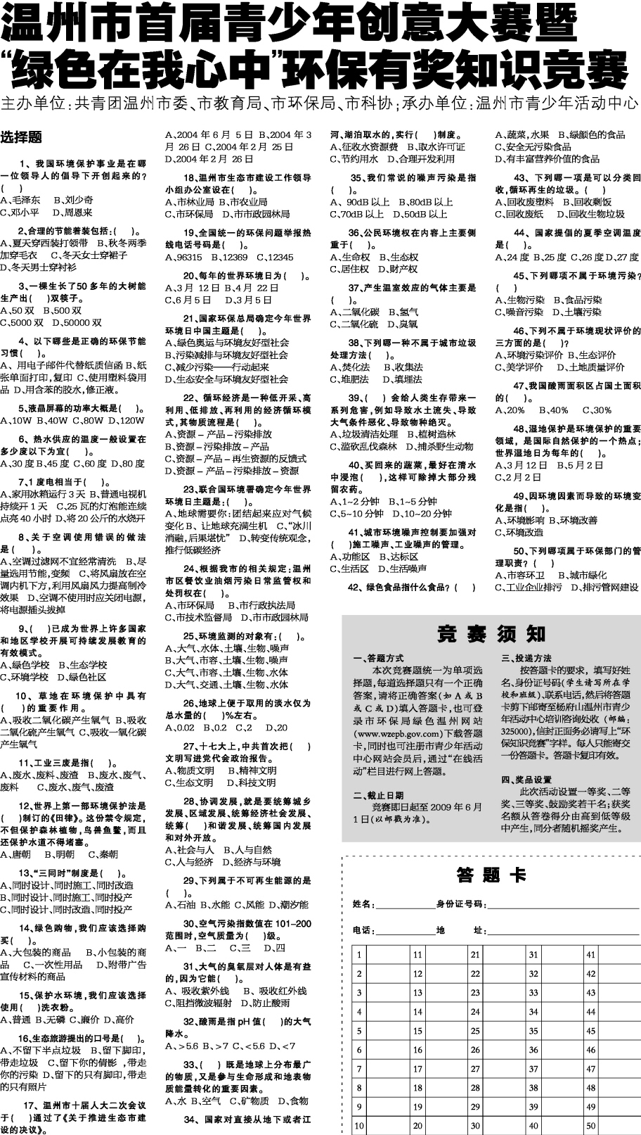 温州市首届青少年创意大赛暨“绿色在我心中”环保有奖知识竞赛