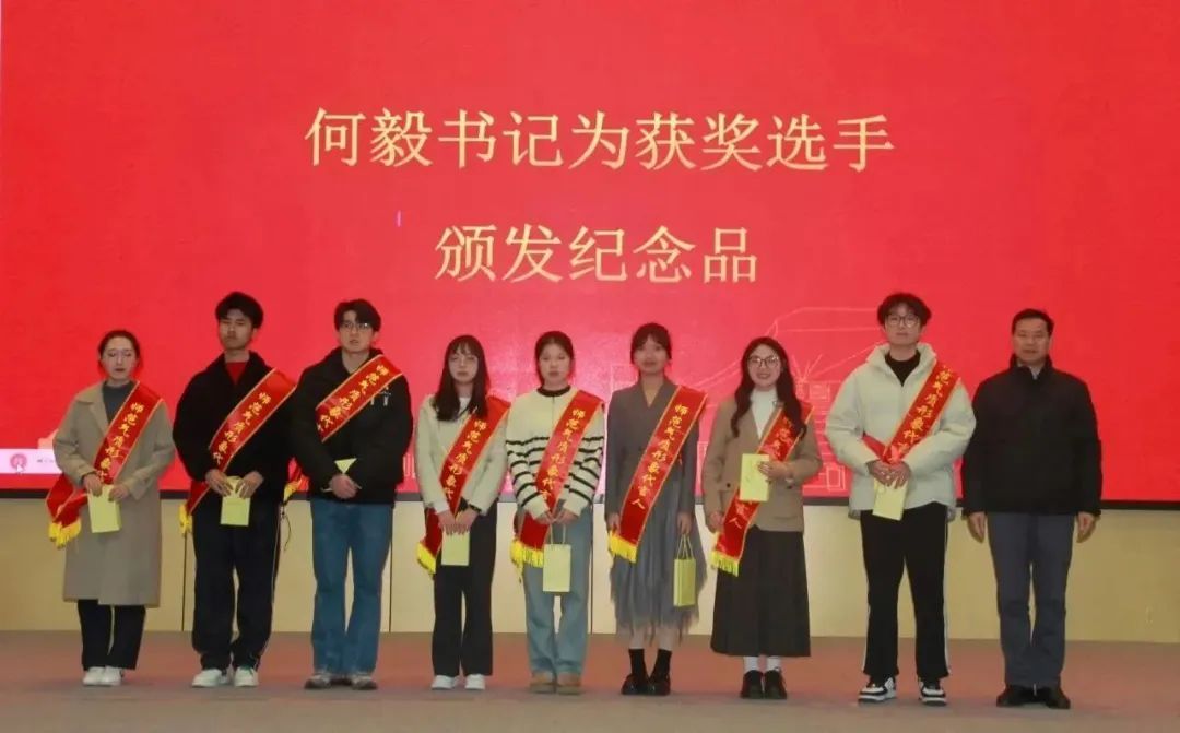 何毅书记为八位获奖同学颁发纪念品,聘请他们担任教院新一轮“师范气质形象代言人”并为其颁发聘书、授予绶带。