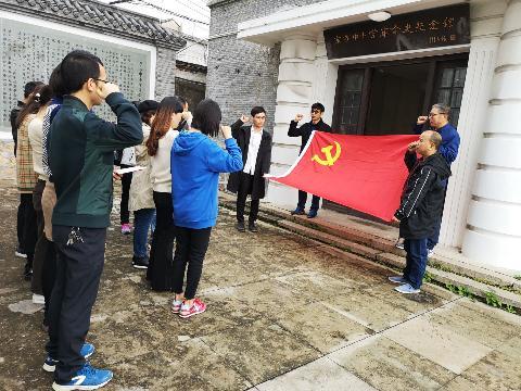 在东方中小学革命史纪念馆前,全体参加的党员群众在党委书记杨立淮同志的带领下,学习习近平新时代中国特色社会主义思想,学习习近平总书记《用共产党员的标准严格要求自己》等重要讲话,并重温了入党誓词。接着,全体参加的党员群众全神贯注聆听讲解员讲解,在东方中小学革命史纪念馆学习,接受革命传统教育。展馆中的每件文物都十分珍贵、每个革命故事都让人动容。瞻仰先烈,铭记历史,置身其中,感受着当年先烈们不怕牺牲的英雄主义精神和人民群众英勇支援前线的奉献主义精神。从中解读我们党的初心,从中理解党员和教师的神圣使命。