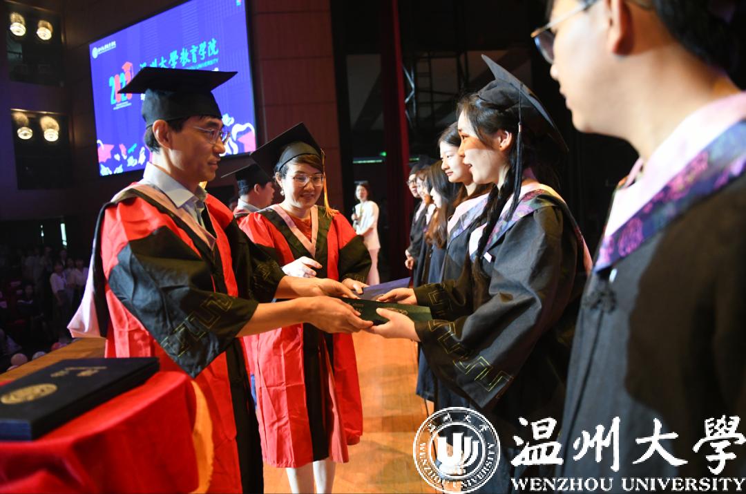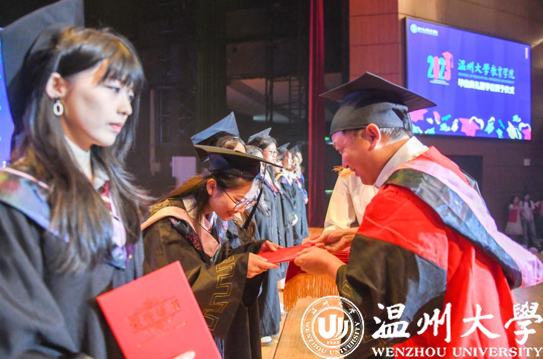 专科学生代表吕彤彤讲话。她谈到,温大就是她的第二个家,给予了她温暖与力量。在这里,她与温大一起度过了无数个日夜与春秋,承载了太多太多的回忆与经历。而这些共同的经历与回忆,都将永远的成为每一位毕业生心中最宝贵的财富。