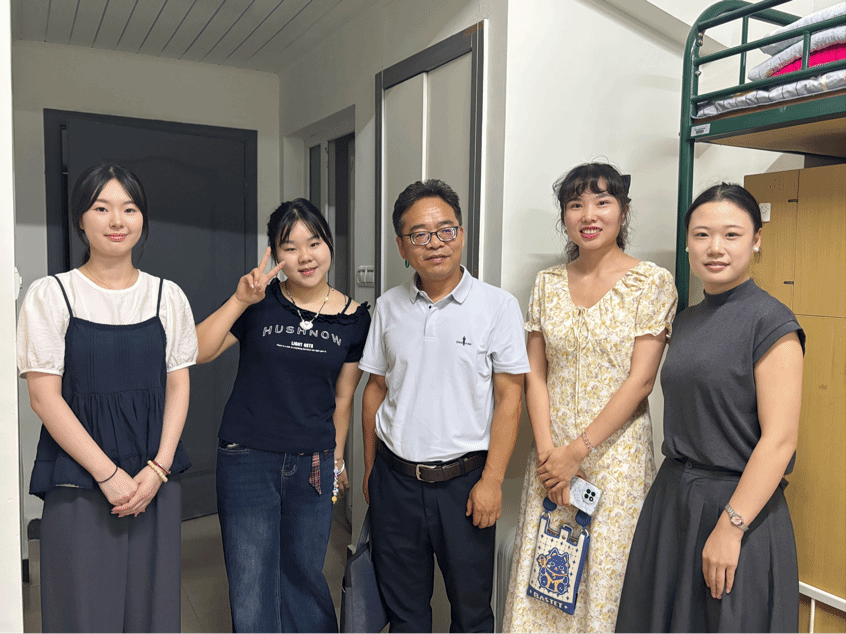 领导老师、辅导员们走访寝室。期间,领导老师们亲切地和学生们进行沟通,一是悉心解答新生们提出的疑问,希望寝室同学互相帮助,并详细讲解宿舍规则;二是殷切嘱咐同学们安全第一,提高防诈骗意识,注意用电安全、食品安全、财产安全;三是引导同学积极表达自己所思所想,就学校初印象进行了交流,并祝福同学们能在温大收获成长。