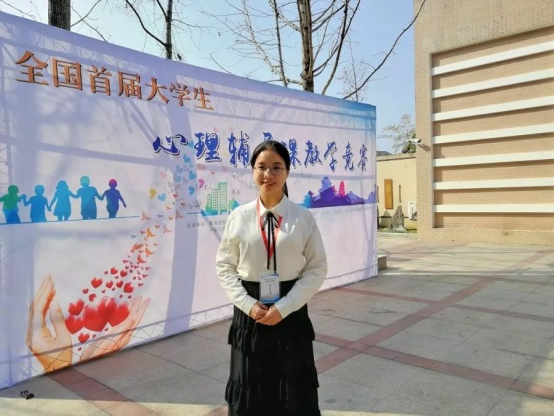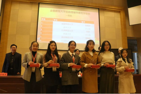 在刚刚结束的全国首届大学生心理辅导课教学竞赛中,由成人色情 心理学系盛建森老师指导的17级应用心理学专业学生汪心怡力战群雄,荣获一等奖!