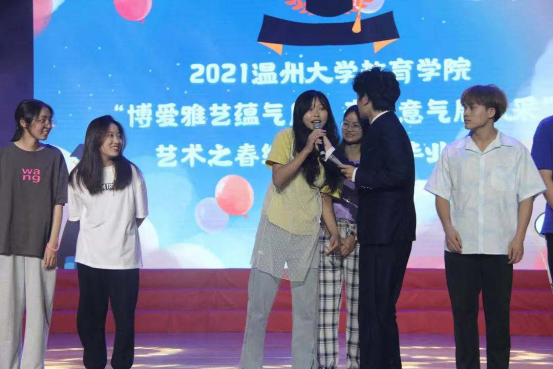 中场阶段,晚会开展猜歌小游戏、抽奖等活动,同学们跃跃欲试,会场气氛十分活跃。