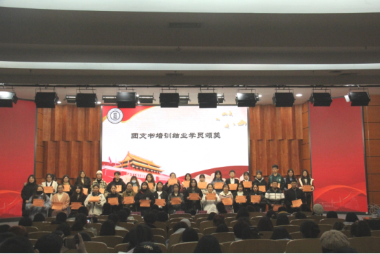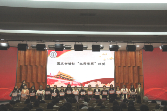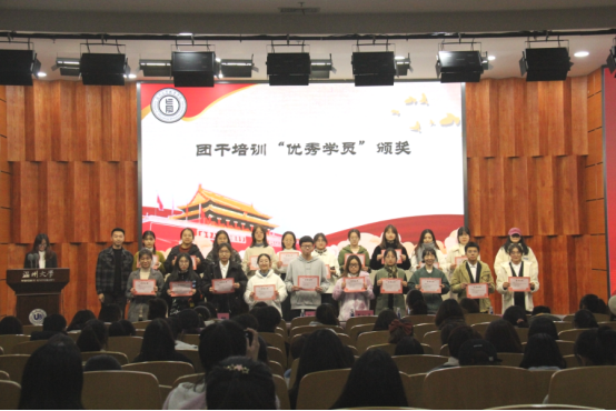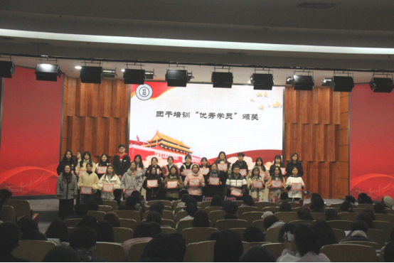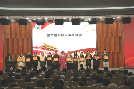 大会第二项议程,彭小媚以及各位老师为本学期团干培训结业学员代表、团干培训“优秀学员”、团支书培训结业学员、团支书培训“优秀学员”颁发证书。