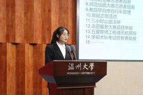 吴超智进行总结发言。她感谢团学成员对学院学生工作的支持,肯定了一学年来团学取得的成绩,也殷切期望着学生干部们在日后明确自我定位、提升团队工作效能,完善服务体系建设,注重自身能力提升,在工作中学习,在学习中成长,从而推动教院团学大步向前、迈往未来。