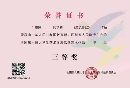 《成长影记》(作者叶琳婷 指导老师:胡铸鑫)获全国艺术作品类三等奖(甲组);
