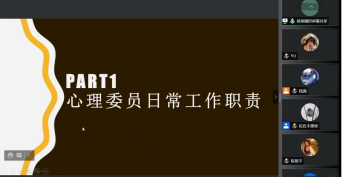 为提高学院总体心理健康教育工作水平,建设一支具备心理自助与助人能力的心理辅导队伍,充分发挥班级心理委员的作用,提高心理委员整体心理素质,成人色情 于9月29日下午开展了线上心理委员培训,本次培训内容包括学习了解心理委员职责和部署读书节系列活动,学工办辅导员薛彬鹏出席,院全体心理委员参与,院团委、学生会公寓心理部杨雨晴同学主持。