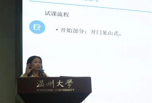 第一部分是由林芬老师带来的《试讲的魅力思考》理论演讲。