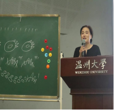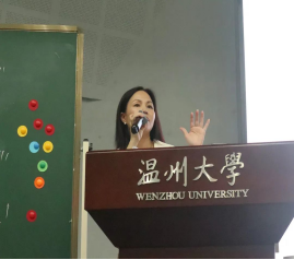 讲座伊始,林老师先做了一个小游戏,她给出不同的颜色磁铁并指定其对应的动作,要求同学们随着轻快的音乐旋律对老师指出的颜色迅速做出动作。接着,林老师从何为试讲、试讲的价值与意义、试讲的技巧,评分标准这四个方面出发,展开了相关演讲。她给出了“试讲”清晰准确的定义,使学子更加明确教学流程和说课要点。在演讲过程中,林老师亲身示范,用有趣的腔调模仿儿童故事的主角,并结合自己作为评委的感受和具体事例给出试讲建议。林老师谈到,在试讲过程中要增加互动,创新思维,延伸课程,这样可以充分启发幼儿思考,从而一步升华课堂。