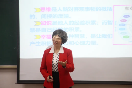 首先,张海音老师为学子们讲述了什么是智慧,她指出幸福就是一种智慧,是一种让我们产生积极行动力的心理力量。张海音老师又通过没有四肢的生命战士胡哲的故事提醒在座的同学们要保持积极的思维,耐心发现自己内心真正的需要,学会接受自己并努力活出最真实、最乐观的自己。