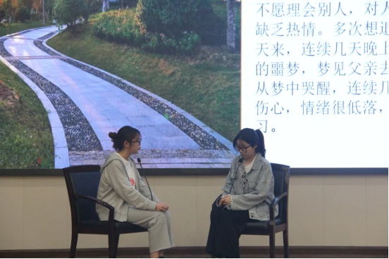 第二个模块为情景模拟,心理助人者和扮演者就某个心理案例展开谈心谈话,运用心理助人技巧,通过沟通互动帮助同学解决心理困扰。该环节中,他们真实地扮演着一位疏导者的角色,以朴实易懂的语言开导着朋辈,为倾诉者提供倾听和情感支持,送去内心最真挚与最暖心的话语。