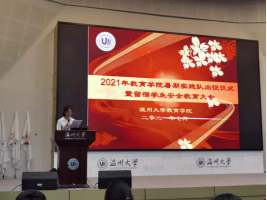 首先,保卫处副处长钱合激老师给大家带来安全教育讲座。指出了暑期安全的八大注意事项。对于防火、防诈骗、防溺水等问题做出了叮嘱。最后,也叮嘱学生牢记班主任、辅导员和保卫处的电话。