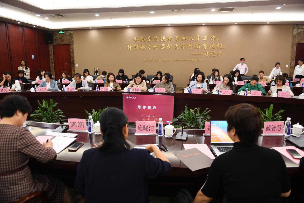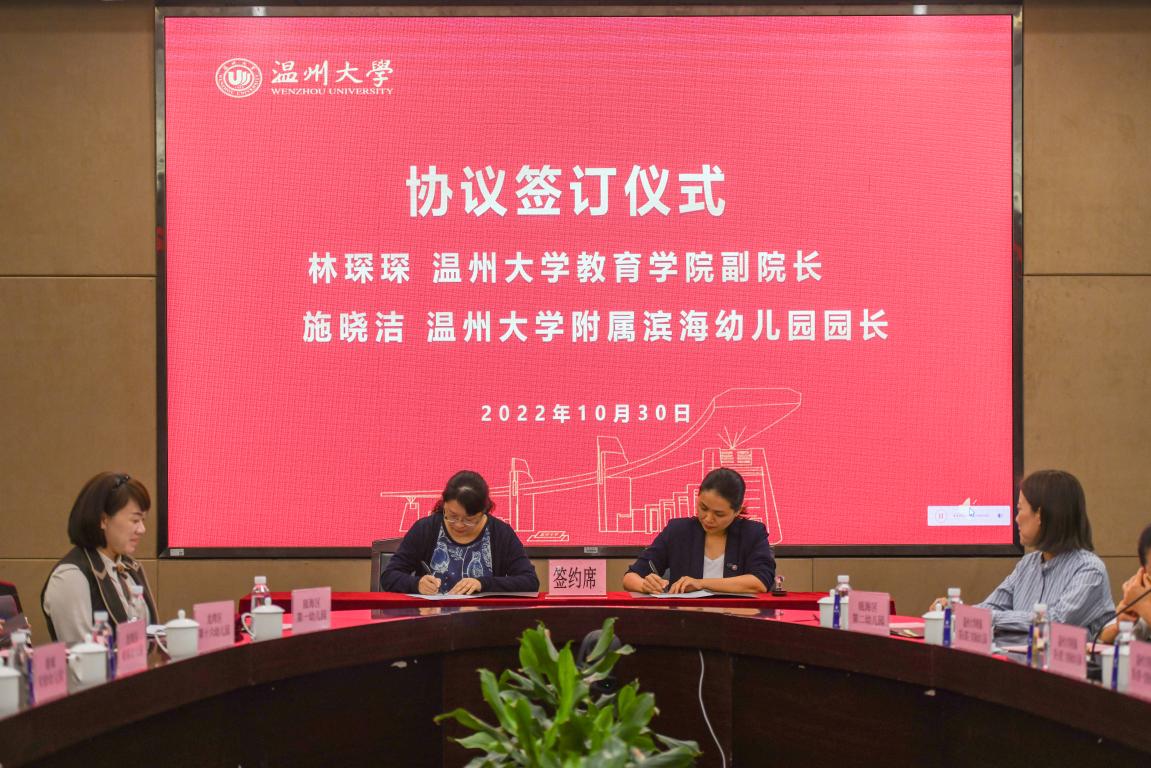 为了更好地培养学前教育优秀人才,提升温州学前教育发展质量,在温州市教育局的大力支持下,成人色情 于10月30日上午在岩松堂白鹿厅举行成人色情 教师教育实践基地协议签订仪式。温州市学前教育指导中心主任陈苗、各县(市、区)教育局幼教科科长及幼教干部、37家幼儿园园长参加签约,成人色情 党委书记何毅、副院长林琛琛,学前教育系主任李娟、系书记龚泉、系副主任柴林珊及相关老师参加会议。