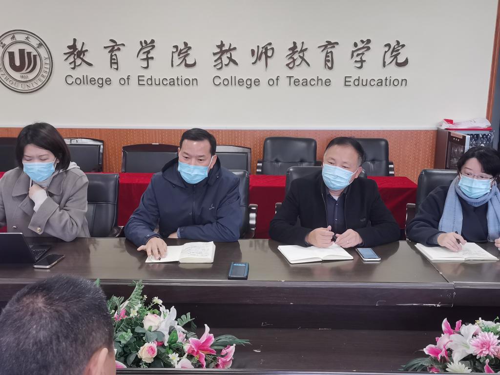 王舜副校长高度肯定学院在疫情防控中采取的积极举措,同时强调学院要把抓安全稳定工作和抓学院发展相结合,紧紧围绕博士点申报,继续凝练学院特色,推动学院内涵式、高质量发展。随后,王舜副校长还对学院的师资队伍建设、国际交流与合作、服务地方等工作提出了意见和建议。