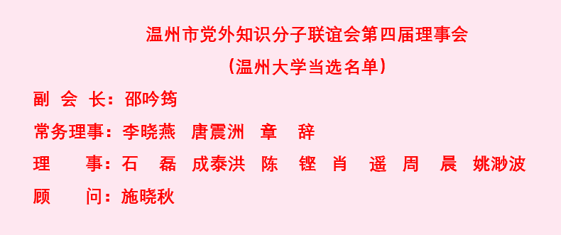 温州市知联会是由温州市各界中高级党外知识分子为主组成的具有统一战线性质的联谊性、地方性和非营利性社会组织,是中共温州市委联系党外知识分子的桥梁和纽带,是开展党外知识分子和无党派人士统战工作的重要平台和载体,是党外知识分子之家,本届联谊会共有理事175名。