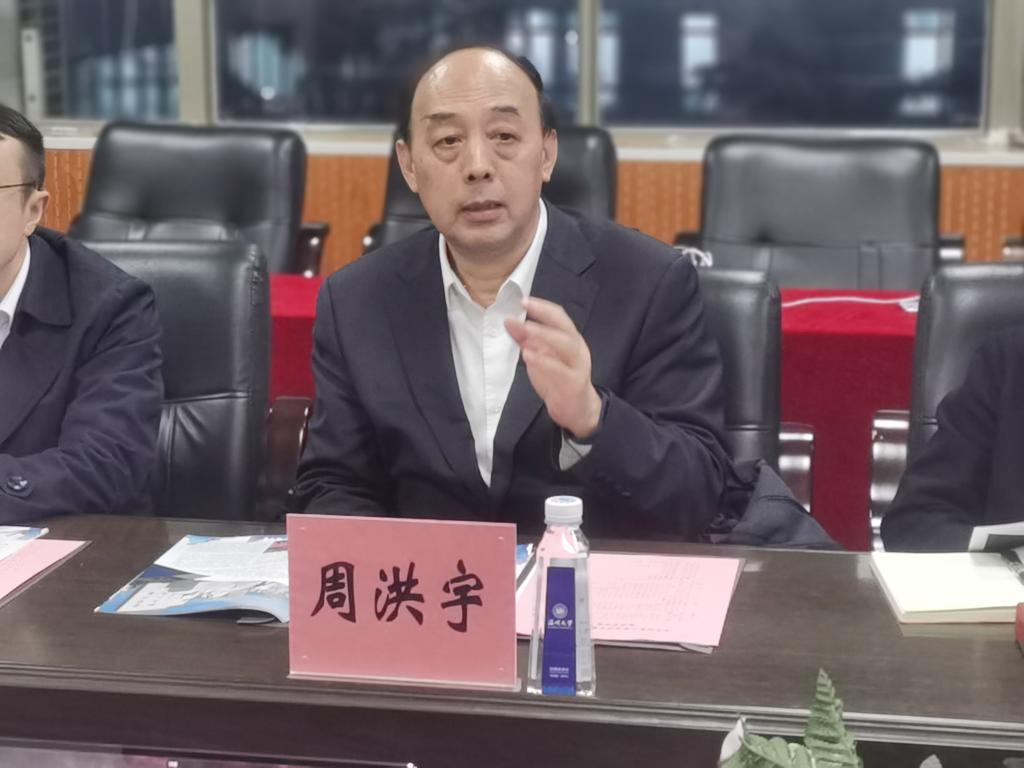 学院党委书记何毅向周洪宇教授介绍了学院的整体情况和近些年学院在人才引进、学科建设、专业发展等方面取得的成绩,着重就学院学科建设向周洪宇教授进行咨询请教。