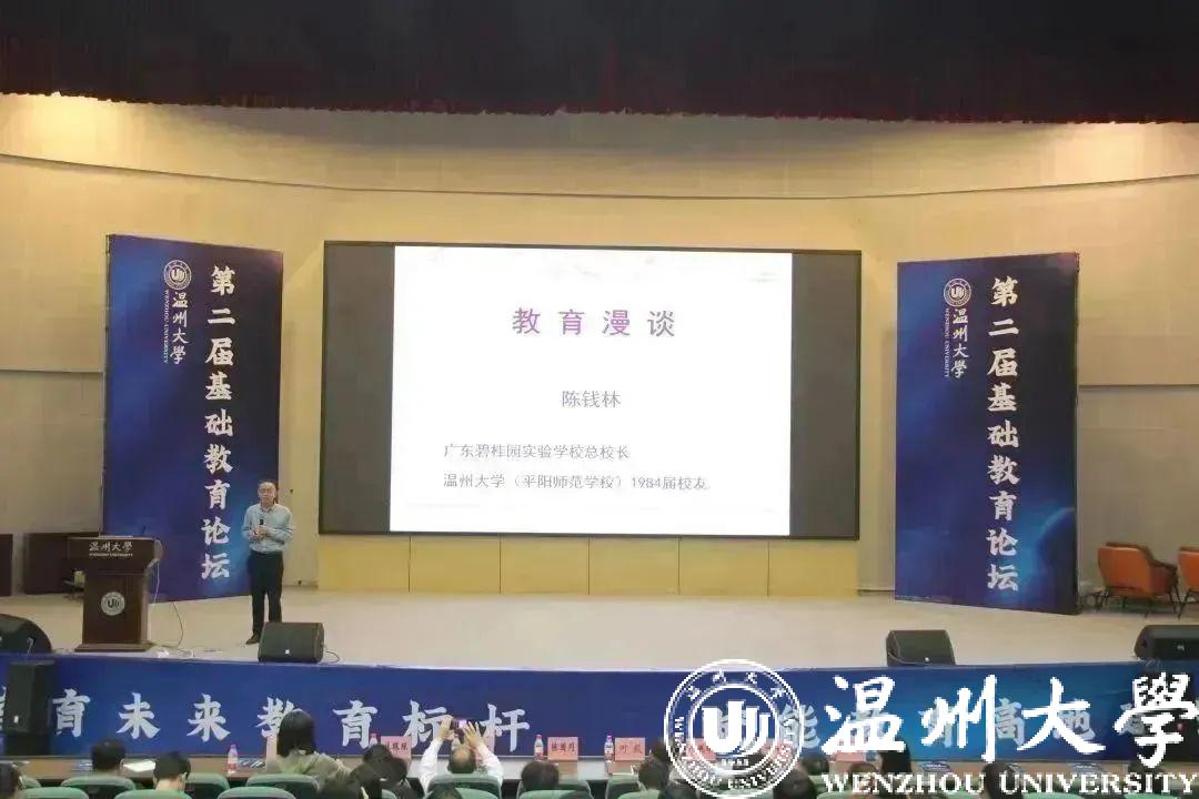 广东碧桂园教育集团区域总校长、温州市首批教育名家、浙江省第八届督学、长三角第七届最具影响力校长、温大成人色情 84届校友陈钱林作《教育漫谈》主旨报告。报告从学习、立德树人、家庭教育、国际课堂以及专业成长五个方面展开。陈校长从学习的基础谈起,向与会人员分享了学习方法,并针对不同的学科提出了自己的理解;通过原创“健全人格”坐标图,陈校长提出了关于立德树人的思考。“家庭教育的本质是育人,重自律、自学、自立。”针对目前较热的家庭教育问题,陈校长强调“最好的家庭教育是亲子健身、亲子阅读、亲子探究、亲子对话、亲子共成长”;在中、西方教育的比较下,“有志向、善学习、抓机遇”对于个人成长大有裨益。与会人员互动频繁,现场气氛热烈。