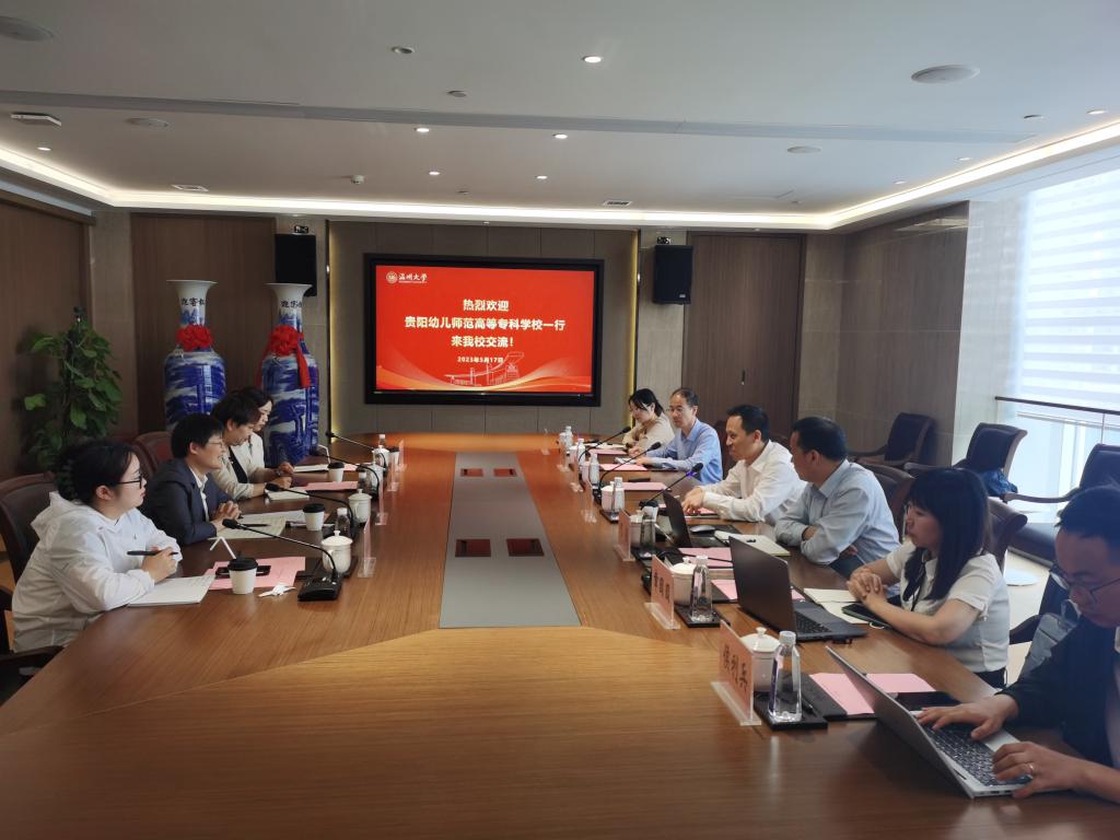 2023年5月17日上午,贵阳幼儿师范高等专科学校副校长潘丽芬带领学生处副处长戴媛媛及相关人员一行来访交流。校党委委员、副校长王舜,学工部部长张敏,教育学院党委书记何毅、党委副书记章园园,学生处超豪学区办公室主任郑光西,成人色情 辅导员代表参加座谈交流。座谈交流在校友之家举行。