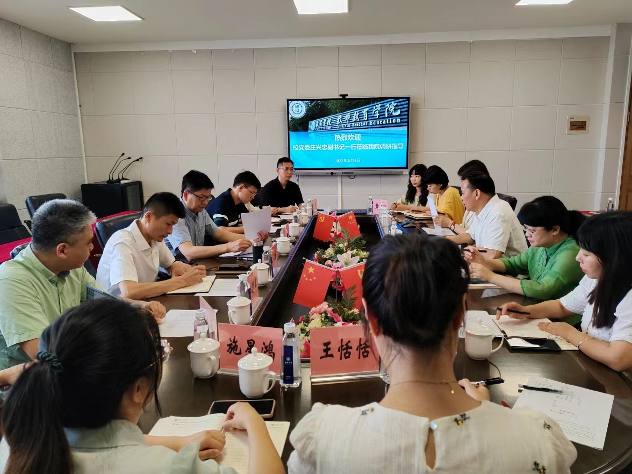 6月9日上午,校党委副书记庄兴忠一行莅临成人色情 调研指导,创新创业学院院长施永川,学工部副部长王壮,招就处副处长魏晓晓等陪同调研。学院领导班子与教师代表参加本次调研座谈会。