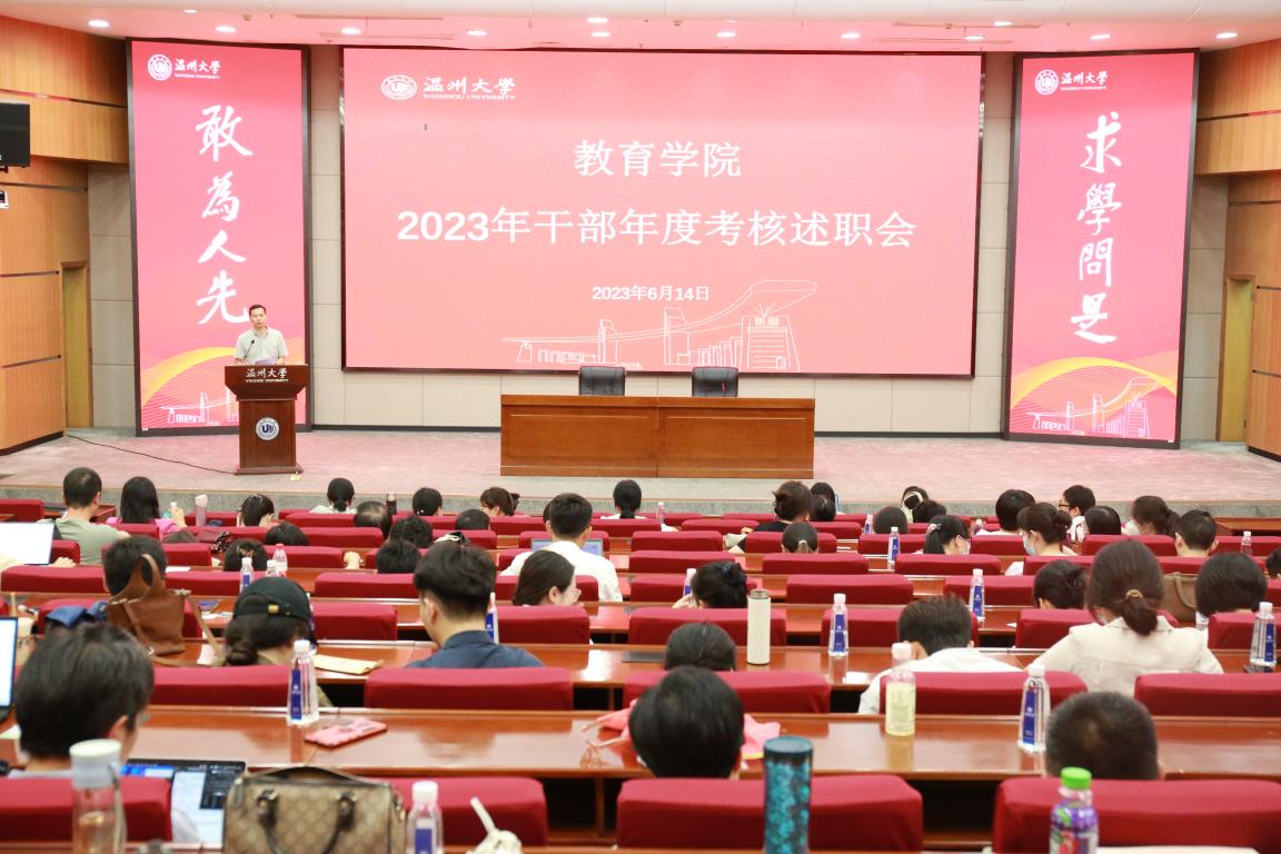 6月14日下午,成人色情 2023年干部年度考核述职会在育英图书馆二楼报告厅召开,学院领导班子及全体教职员工参加本次会议。