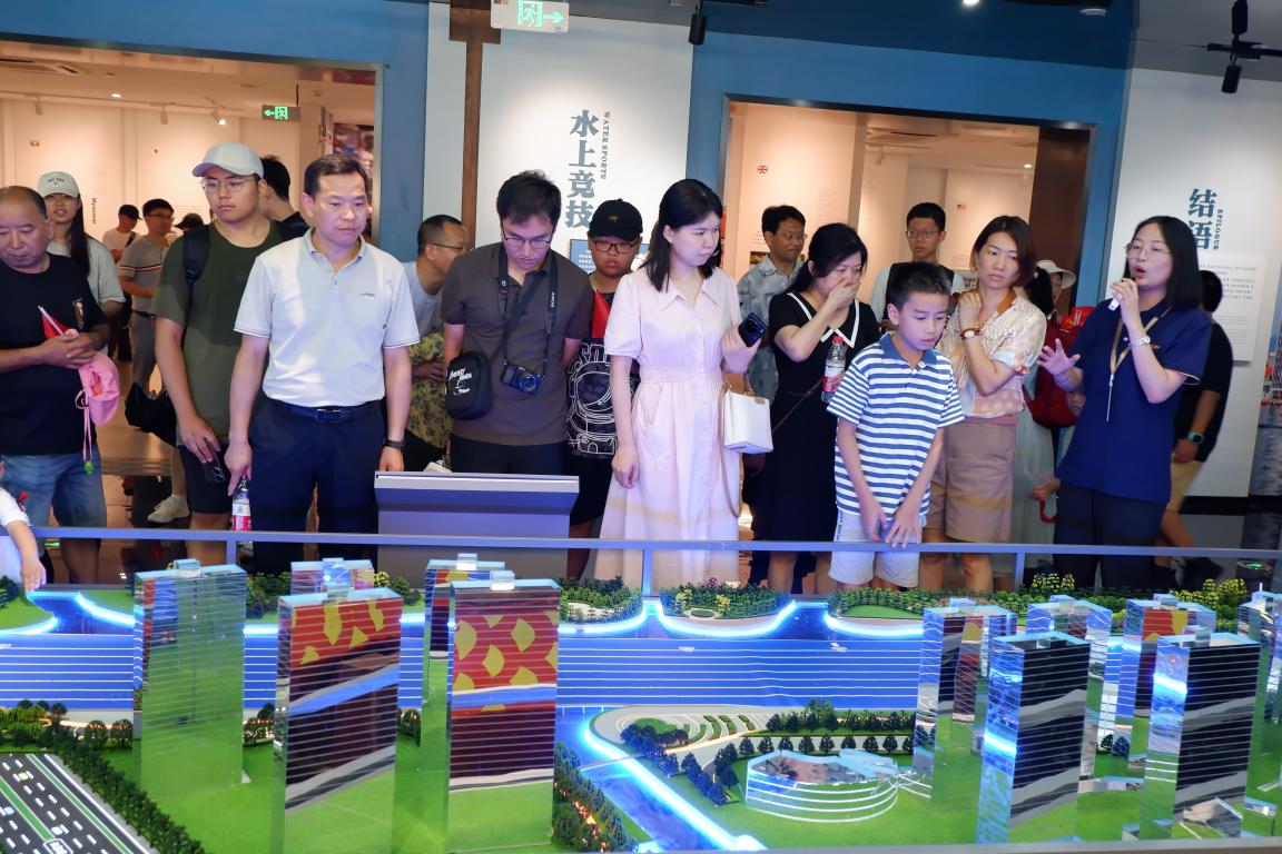 党员同志们走进亚运场馆温州龙舟运动中心,只见主楼依河而建,似蛟龙跃入水中,流畅的线条让人眼前一亮。讲解员带大家穿梭在中心场馆,从龙头到龙尾,依次参观观龙台、运动员综合馆、终点塔和潜龙阁。据介绍,温州龙舟运动中心整体建筑以“龙跃东瓯境 桨舞丝路情”为设计理念,完美融合了中国传统文化和亚运标准场馆建设要求,体现了潜龙在渊、祥龙戏珠、飞龙出水的美好寓意,让“千年龙舟”与“亚运激情”美丽邂逅。