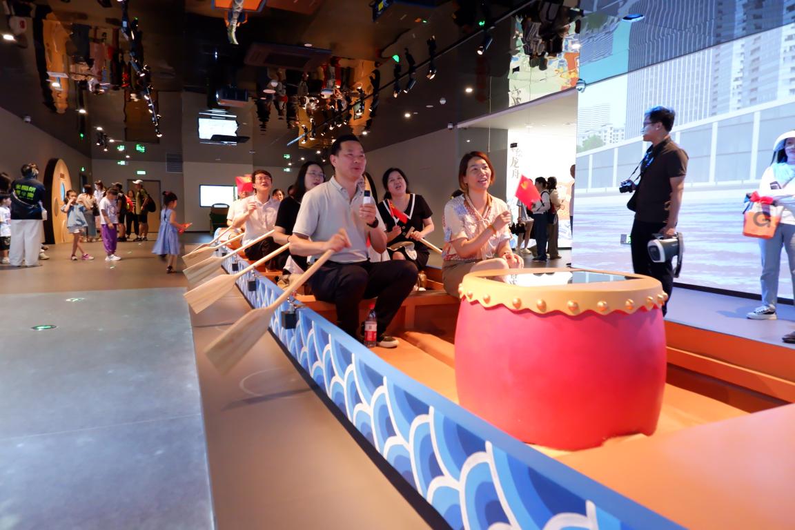 随后,大家走进温州龙舟文化博物馆,探寻“劈波斩浪、水上狂欢——走向世界的龙舟文化”主题,参观序厅、第一单元“龙耀神州”、第二单元“龙腾东瓯”、第三单元“百舸争流”和互动区“激流勇进”五部分设计展陈内容,感受非遗技艺、图版、数字多媒体技术等在龙舟文化中的应用,感悟在东瓯故地、神州大地、世界各地起源、演化的龙舟文化,了解温州各地区多渠道、多维度宣传弘扬龙舟文化和龙舟竞渡精神。通过近距离了解龙舟文化,激励党员们发扬同舟共济、团结协作的龙舟精神。