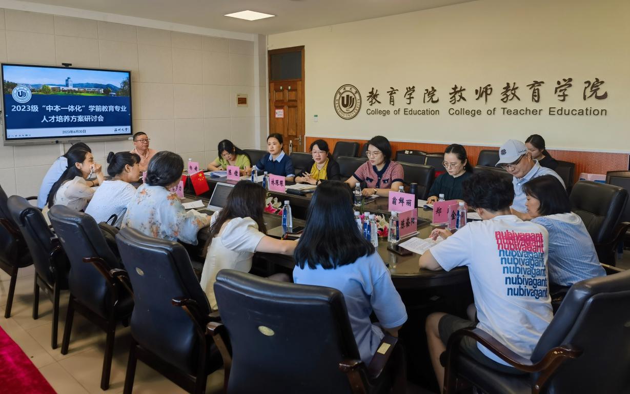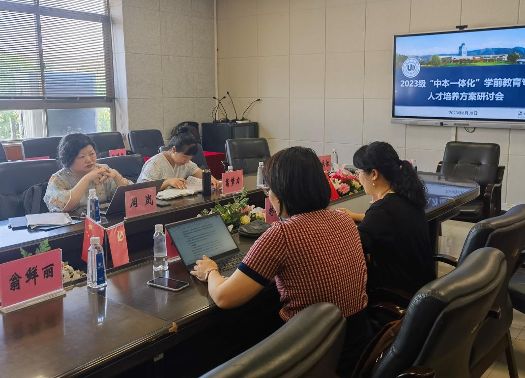 2023年6月30日上午,在成人色情 召开2023级”中本一体化“学前教育专业人才培养方案研讨会。本次会议依托教学研讨方式,推进2023级”中本一体化“人才培养方案的系统性修订工作。成人色情 副院长林琛琛、学前系主任李娟,学前系各教研室主任及老师代表、学前教育科老师、温州市中等幼儿师范学校副校长周岚、教务主任葛梦力、教研组负责人以及相关任课老师参加会议。