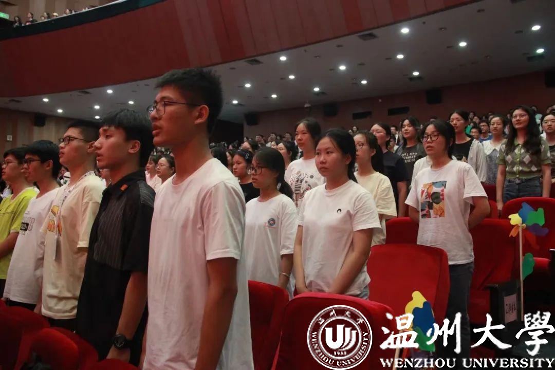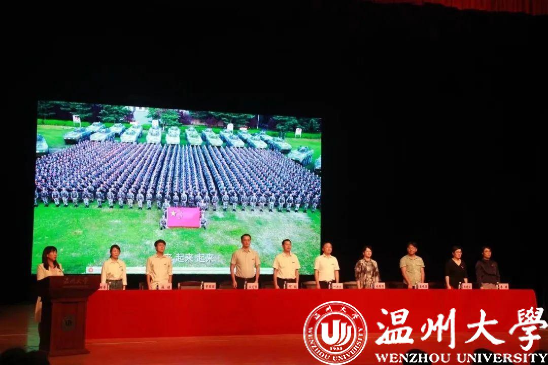 全体师生齐唱温大校歌。相信“求学问是、敢为人先”校训精神将成为同学们的大学生活的主旋律,同学们定能用笔书写人生的答卷,在新时代的火热实践中放飞青春梦想。