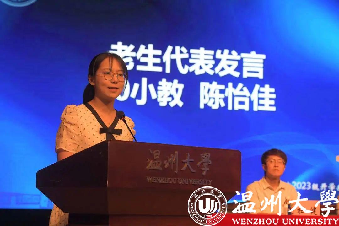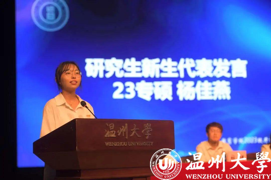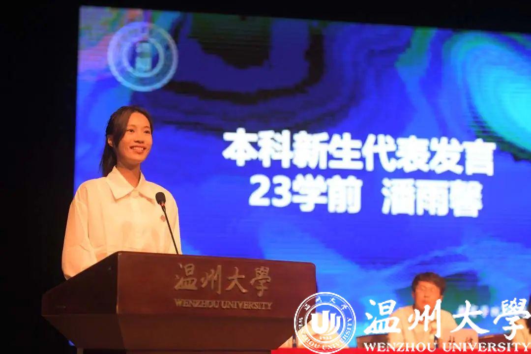 来自23学前教育本科的潘雨馨作为新生代表诉说出了新一届教院学子立志于追寻梦想、奋斗拼搏、培养“博爱雅艺”师范气质的决心。来自23专硕的杨佳燕表示,他们将永远保持好奇心和求知欲,向下扎根,向上生长,迸发璀璨星河。