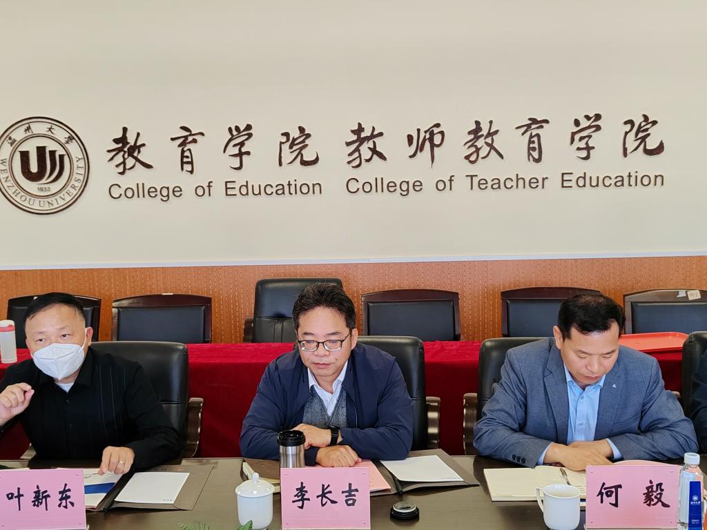 2023年11月17日上午,台州学院教师教育(体育)学院张夫伟院长、吴银银书记一行六人来成人色情 调研交流。学院院长李长吉、党委书记何毅、副院长叶新东及相关老师参加座谈交流会。