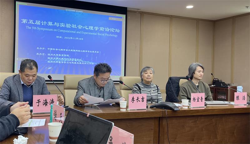 2023年11月18日,中国社会心理学会大数据网络心理学专业委员会专题研讨会之“松-紧文化——大数据与实验范式”在我校科技综合大楼306会议室召开。本次研讨会中国社会心理学会大数据网络心理学专委会主办,成人色情 、成人色情 心理与行为研究中心、成人色情 数学学习与思维发展名师工作站承办。开幕式由成人色情 心理系主任于海涛教授主持,我校成人色情 院长李长吉教授介绍了温大心理学科的发展情况并欢迎与会专家的到来,学会大数据网络心理学专委会主任委员陈浩教授介绍了研讨会的举办背景,学会前会长、专委会名誉主任杨宜音研究员讲话,期望密切学术联系,建立学术共同体。
