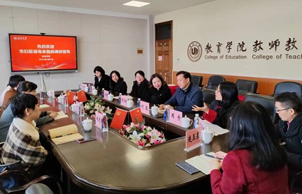 2024年3月5日上午,温州市妇联陈爱英副主席一行来成人色情 调研指导。校妇联主席陈宏毅、学院党委书记何毅、学院副院长兼妇联主席林琛琛、成人色情 家庭教育研究院院长周奇及相关教师代表参加座谈。