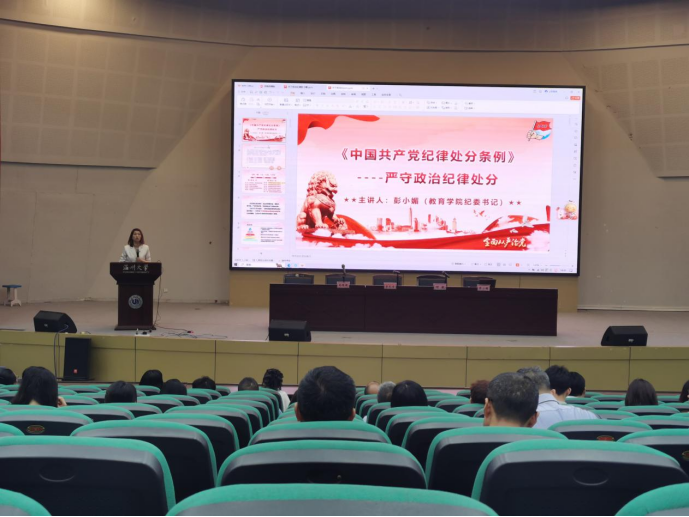 会议开展党纪学习教育。学院党委副书记、纪委书记彭小媚作《〈中国共产党纪律处分条例〉——严守党的政治纪律篇》专题报告。她从毛泽东论党的纪律、习近平论政治纪律、领导核心至关重要、“四个服从”由来、违反政治纪律行为20条等方面深入浅出的阐述了政治纪律的核心要义,为与会党员上了一堂生动的政治纪律课、警示教育课和实践指导课,引导大家强化纪律意识,严守纪律规矩,推动全面从严治党向纵深发展。会议要求全院师生党员特别是党员领导干部以示范争先的标准定位认真学习《条例》,做到学纪、知纪、明纪、守纪,搞清楚党的纪律规矩是什么,弄明白能干什么、不能干什么,把遵规守纪刻印在心,内化为日用而不觉的言行准则。教师党员要树立正确的政治观、发展观、事业观,增强责任感和使命感,以严明纪律保障学院高质量发展。