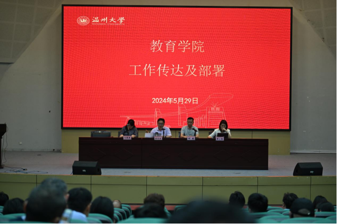 分管领导传达及部署学院近期工作。彭小媚副书记从学生安全、就业情况、学生离校、学科竞赛、儿童剧公演等方面结合分管工作进行梳理,并作进一步具体部署。林琛琛副院长就教学督导、学前专科招生面试升学考试、师范技能比赛等方面进行工作部署,并对相关工作提出具体要求。李长吉院长结合学校近期会议精神对引才新政策、科启经费使用、聘期考核管理、教职工考勤、教育教学、人才培养、应用心理师范认证等各项工作做重点强调与部署。