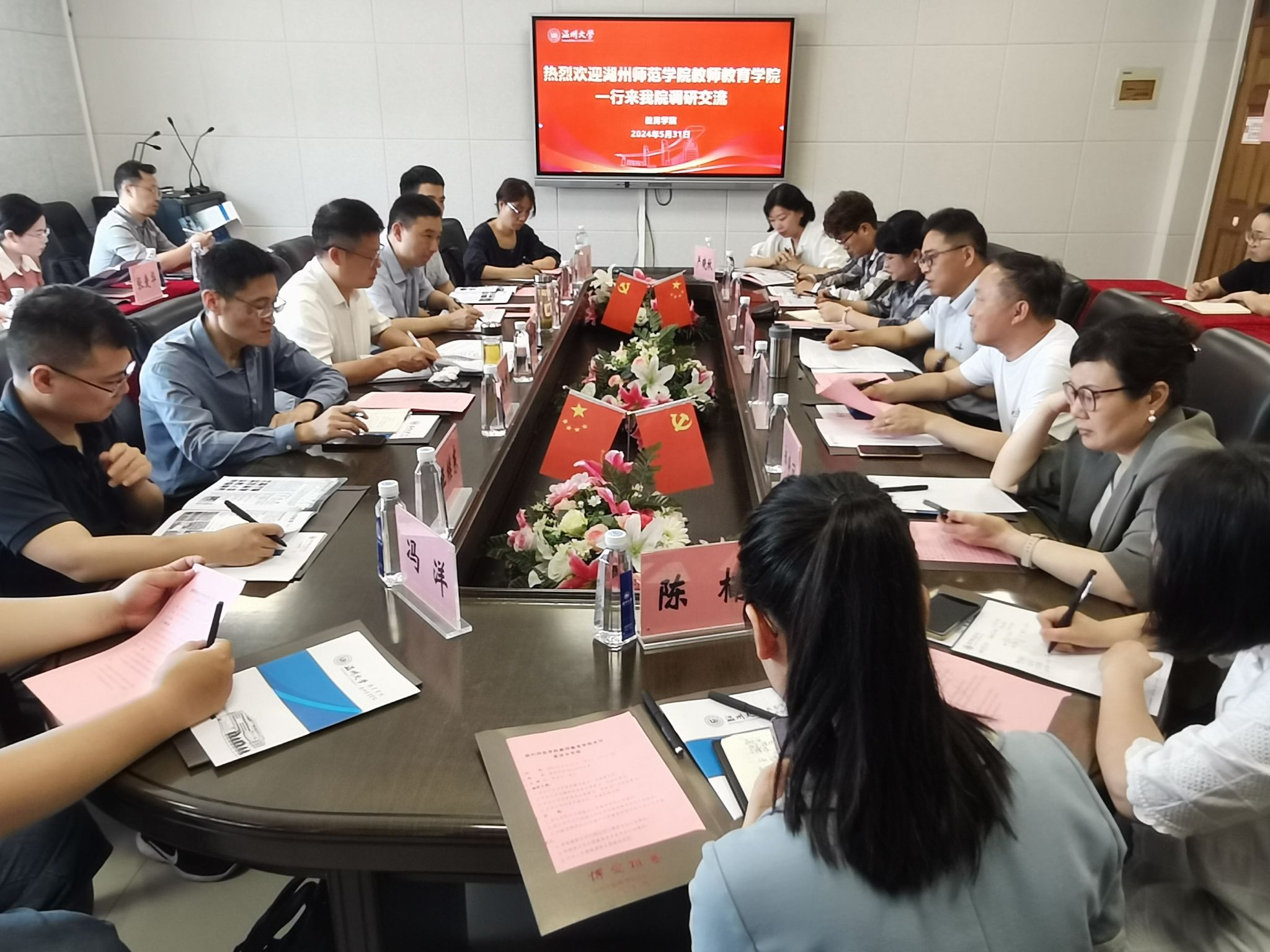 5月31日上午,湖州师范学院教师成人色情 党委书记沈江龙、副院长李茂森等一行来成人色情 调研交流。学院院长李长吉,副院长叶新东、林琛琛,相关系所(科室)负责人参加座谈交流。