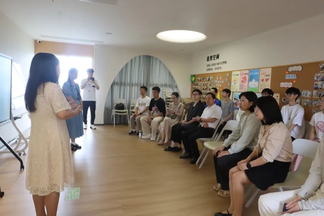 2024年7月9日,成人色情 副校长王舜率队莅临温州市鹿城区青少年心灵润养中心,为成人色情 在此开展暑期实践的“心翼”团队带去了深切的关怀与殷切的期望。温州市鹿城区教育局党委委员、教育发展服务中心主任潘智敏向王舜副校长一行分享了中心建设的理念和鹿城区心理健康教育工作特色,小鹿心屿运营负责人唐璐璐老师详细介绍了中心的建设运营和心理服务开展情况。国际交流与合作处处长陈慧、学院党委副书记章园园、团委副书记徐瑶、学院学工办主任严晓秋等陪同慰问,并举办了一场别开生面的座谈会,为心翼暑期社会实践队之旅添上了浓墨重彩的一笔。