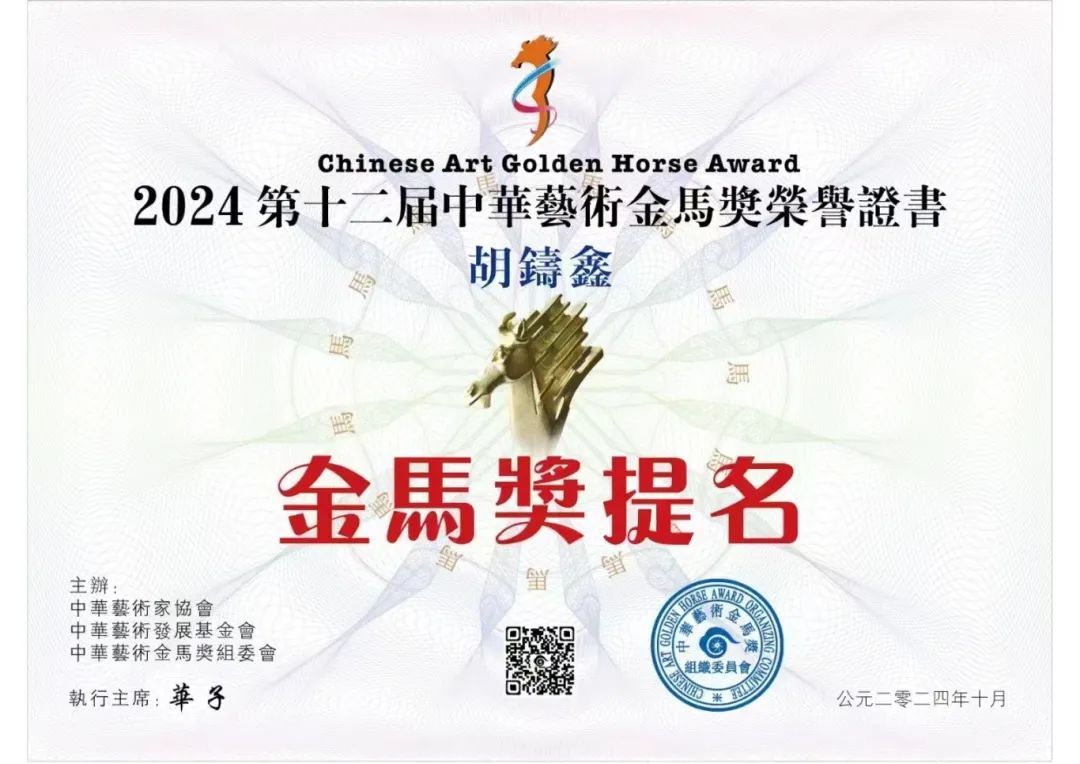 2024年10月,由中华艺术金马奖专业评审委员会主办的2024第十二届中华艺术金马奖于文莱皇家马会隆重举行,成人色情 胡铸鑫副教授的系列作品集入选2024第十二届中华艺术金马奖提名。