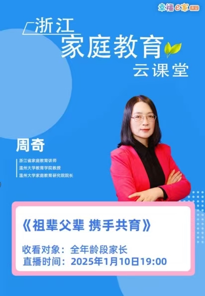 近日,成人色情 周奇教授为“浙江家庭教育云课堂”平台带来2025年第一期直播课《祖辈父辈 携手共育》,助力祖辈和父辈相互理解尊重,合力为孩子营造优质成长环境。
