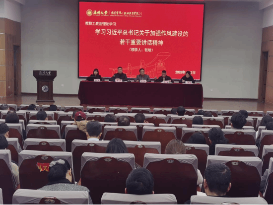 会议开展专题理论学习。张敏书记领学《学习习近平总书记关于加强作风建设的若干重要讲话精神》。张书记强调,要深学细悟,夯实思想根基,将中央八项规定精神内化于心、外化于行,推动作风常态长效,以更加饱满的热情和更加扎实的作风投入到教育教学工作中去,为学院的持续健康发展贡献智慧和力量。同时,张书记还就校内行车安全、师生矛盾隐患排查、保密责任意识加强、宗教安全防范、过“紧日子”、屏幕上的形式主义等工作进行全面部署。