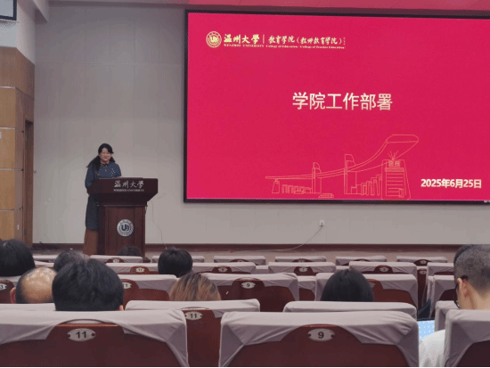 会上,相关领导进行期末工作部署。章志图、林琛琛、章园园等学院领导结合各自分管工作,就招生就业、专项工作、期末监考、本科审核性评估、学科竞赛、暑期学生安全等做具体部署。会上工会主席胡雯老师还对2025年教职工疗休养工作进行详细解读。