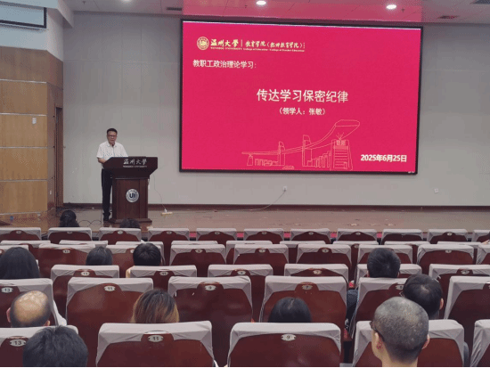 大会开展党课专题学习。张敏书记领学《习近平同志在浙江工作期间的“抓落实八法”》,并传达上级关于“保密纪律规定”的会议精神,张书记结合工作实例,重点从责任人保密意识不强、内部敏感信息违规传输、企图规避保密监督等方面展开深入剖析。会议强调,高校作为知识传播和人才培养的重要基地,加强作风建设是高校教师履行立德树人使命的必然要求。全体教师要时刻牢记自己的职责,不断提升作风素养,为培养德才兼备的优秀人才、推动学院高质量发展贡献力量。
