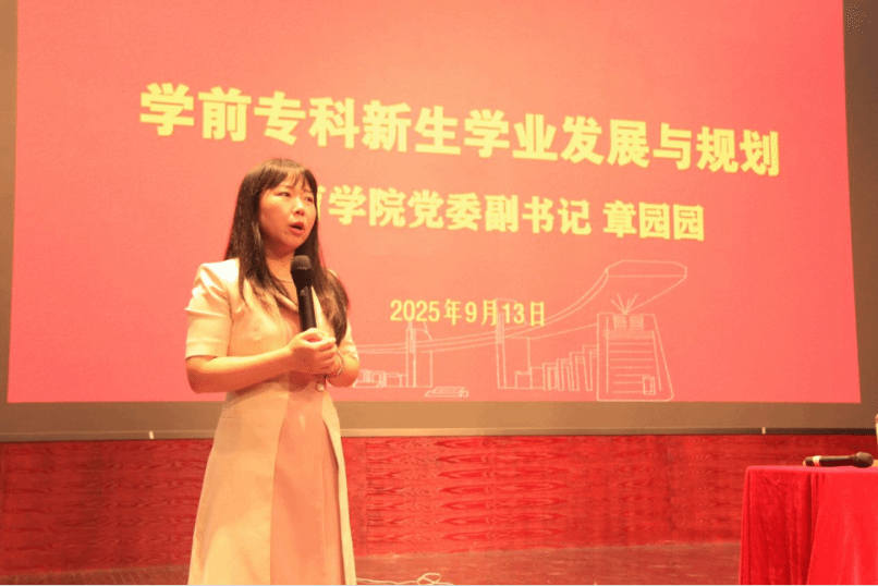 9月13日上午,晨光于新生同行,在南校音乐厅,成人色情 副院长林琛琛、院党委副书记章园园分别为2025级专科新生们带来了专科专业介绍及课程设置、学前专科学生学业发展与规划主题讲座。