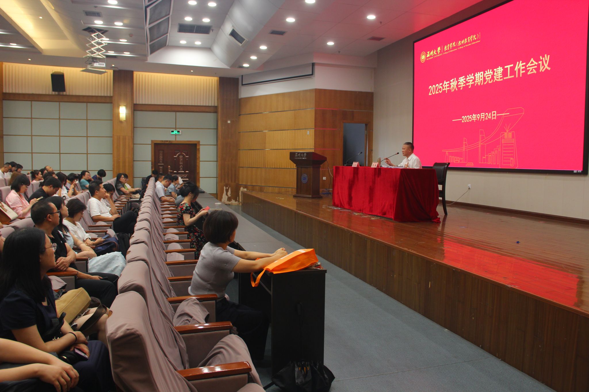 9月24日下午,成人色情 2025年秋季学期党建工作会议在北校信息楼报告厅举行。成人色情 全体领导班子成员、各师生党支部书记及支委参加会议。会上,学院党委书记张敏讲解了本学期党建工作要点,部署了积极推进立德树人综合机制改革有关工作任务,传达了组织学习《习近平文化思想大讲堂》等工作的有关要求,并指导支部如何加强支部班子建设、如何开好三会一课、如何建好支部工作台账,他还特别强调了定期召开支委会的重要性。学院党委副书记兼纪委书记章志图在会上讲解了本学期纪检检查重点工作,并就9月份各师生党支部主题党日活动进行了说明。各支部书记及支委认真参会,大家认为本次会议对于进一步加强支部建设、发挥支部战斗堡垒作用、促进党建业务融合推动学院发展具有积极意义。