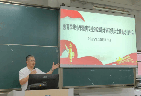 为帮助学生科学规划未来,拓展发展途径,2025年10月15日下午,成人色情 小教系在北校4-214教室召开2027届本科毕业生考研动员会暨备考指导会。会议由小教系书记金丽芳主持,学院党委书记张敏,党委副书记兼纪委书记章志图,小教系梅培军,以及2023级小学教育专业全体学生参加动员会。