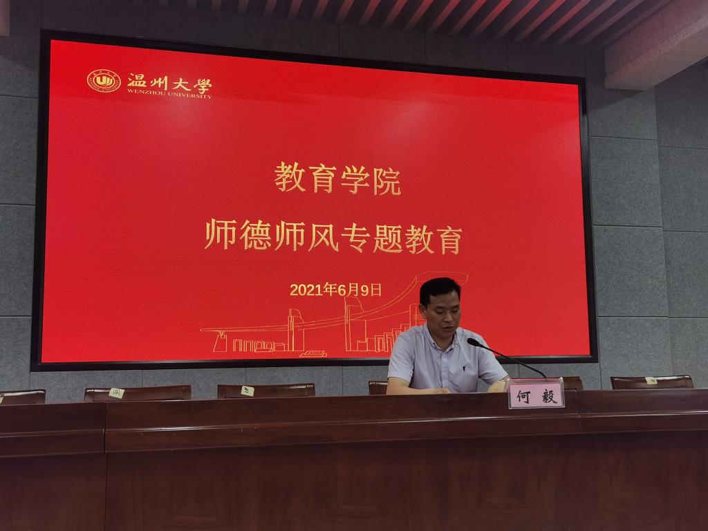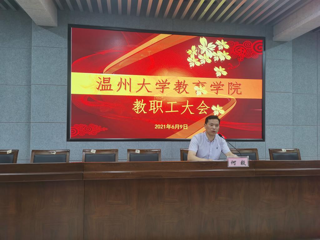 6月9日下午,成人色情 在成人色情 南校区9C301报告厅举行教职工大会暨党史学习教育专题学习会。院领导班子出席会议,全体教职工参加。会议由学院党委书记何毅主持。