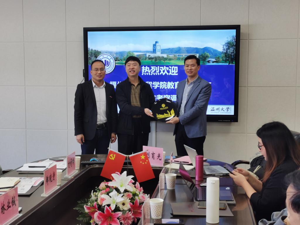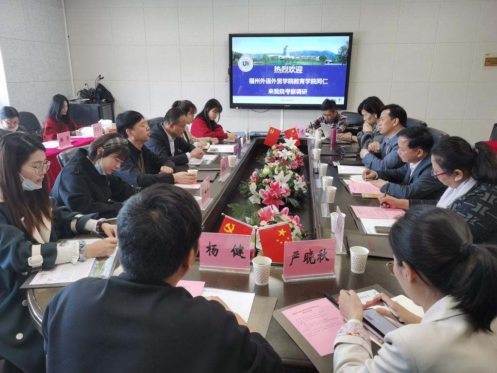 2021年4月19日上午,福州外语外贸学院成人色情 院长刘炎欣、党委书记林业铖一行10人来成人色情 调研交流。学院党委书记何毅、副院长叶新东、副书记彭小媚出席接待,小教系、学前系、学工办、实验中心相关负责人和老师参加座谈。