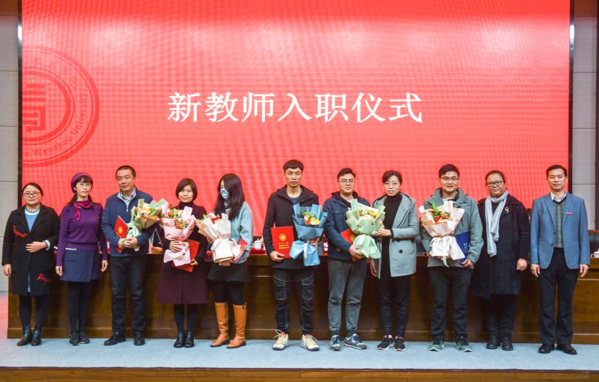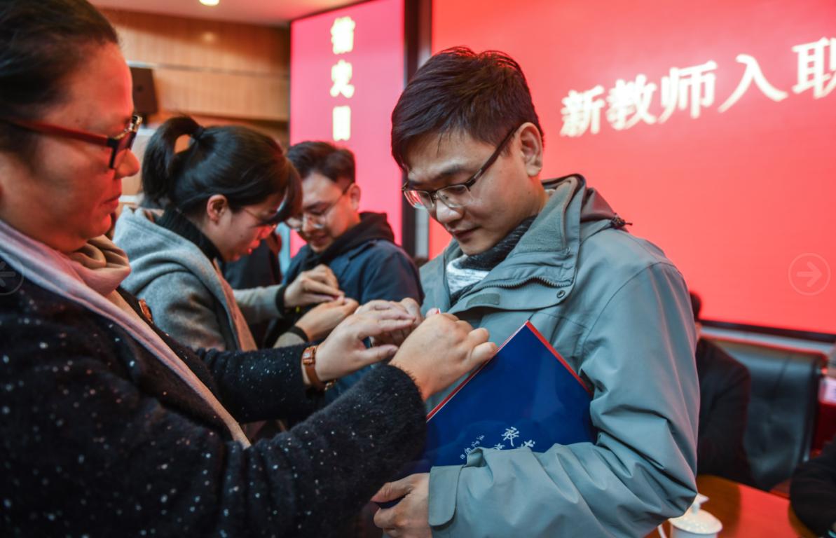 随后举行新教师入职仪式。学院党委书记何毅为7位新入职的教师颁发入职纪念证书、教师师德承诺书、师德师风建设制度摘编等,各系书记、科室负责人为新教师佩戴校徽并献上鲜花。