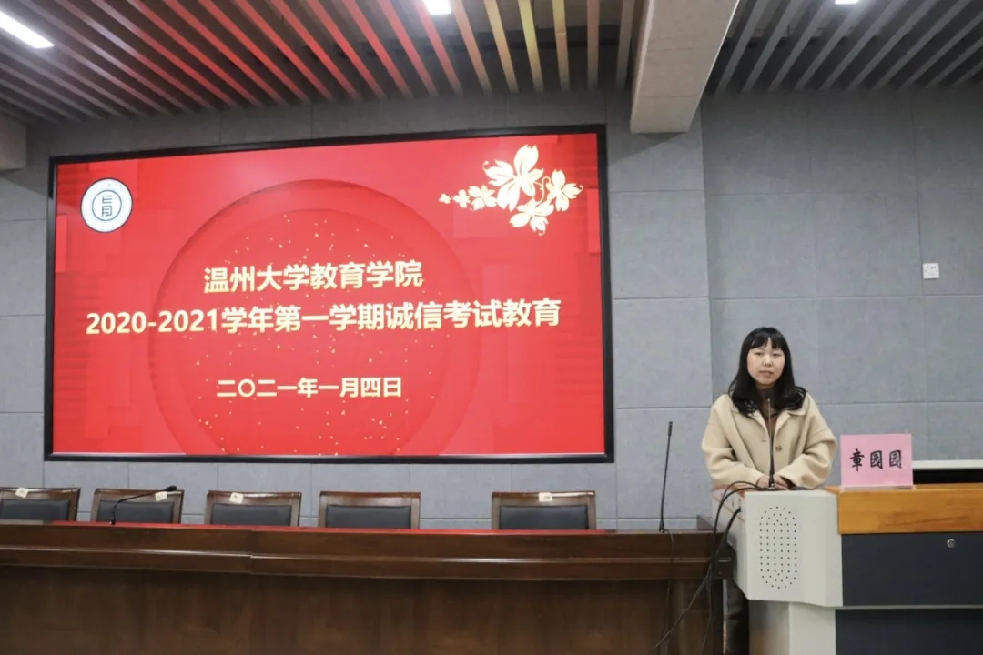 最后,章园园老师进行总结发言,强调了诚信考试的重要意义。她指出,诚信考试不仅是对考试的纪律要求,更多的是对我们自身发展的需要。诚实守信是师德的基本要求,也是教师职业从业的基础。教师职业特性决定了教师的不诚信行为会严重影响到学生的诚信观念和行为。因此作为一名教师,要以身作则,为人师表,杜绝一切不诚信行为。