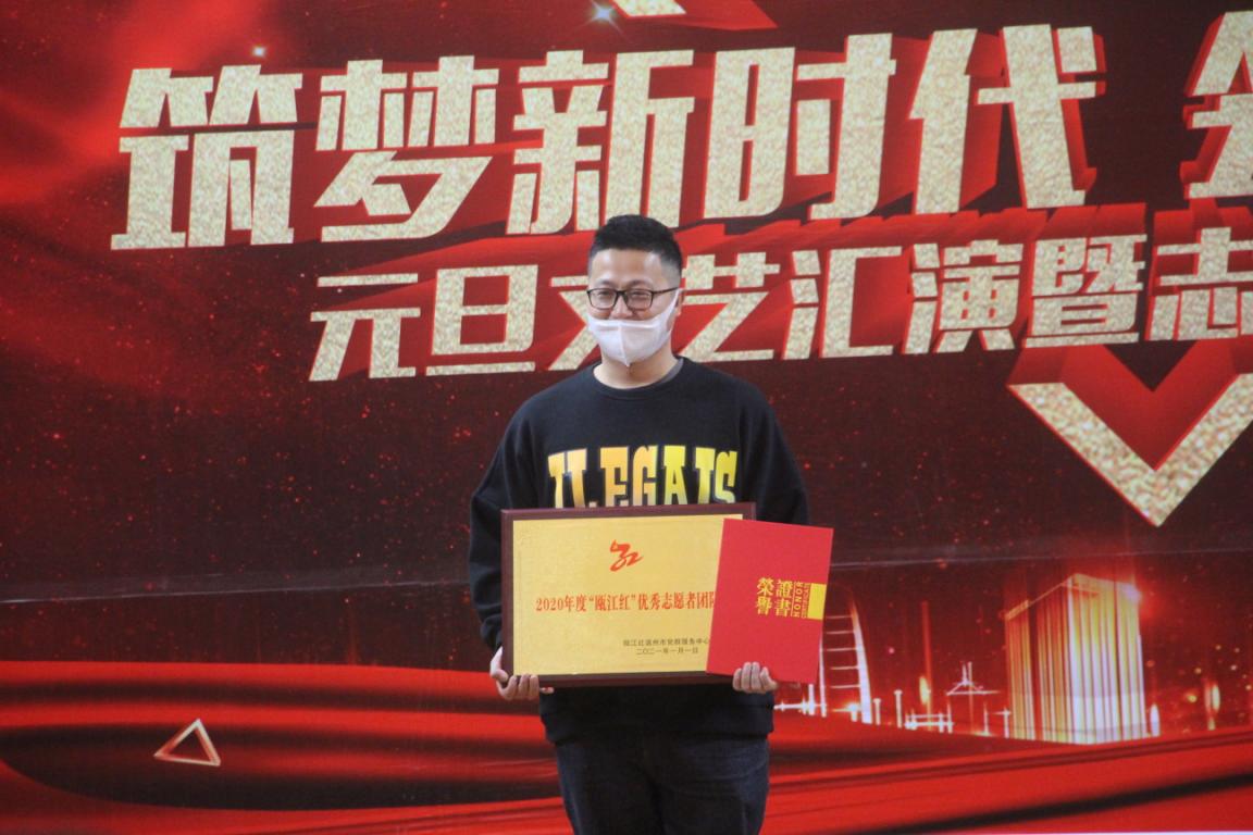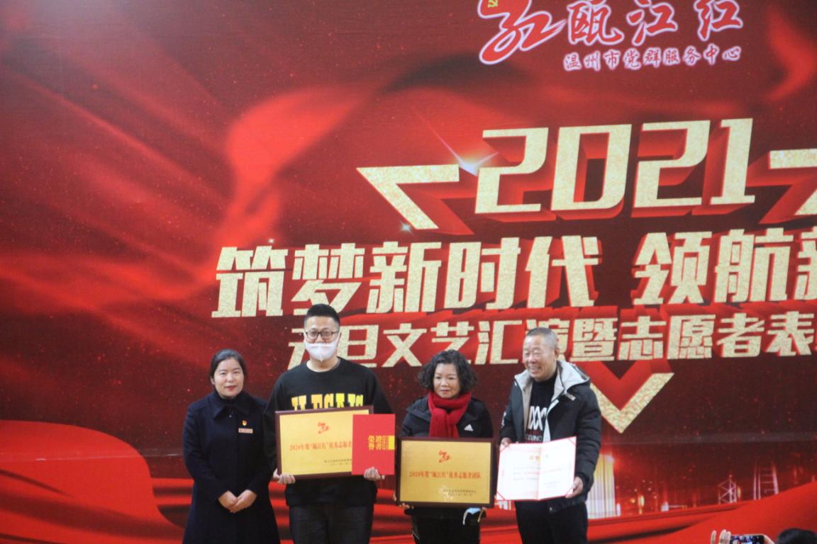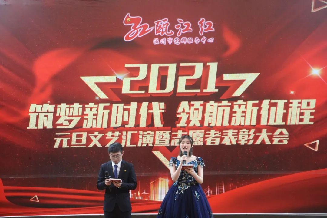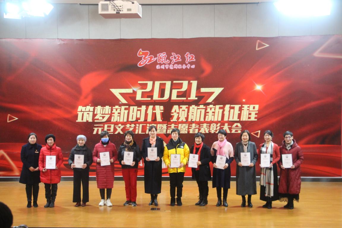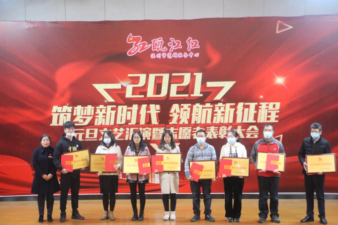 筑梦新时代,领航新征程。1月1日,“瓯江红”温州市党群服务中心组织开展元旦文艺汇演暨志愿者表彰大会,成人色情 青年志愿者团队荣获优秀志愿团队奖,成人色情 张文清同学获优秀志愿者称号。