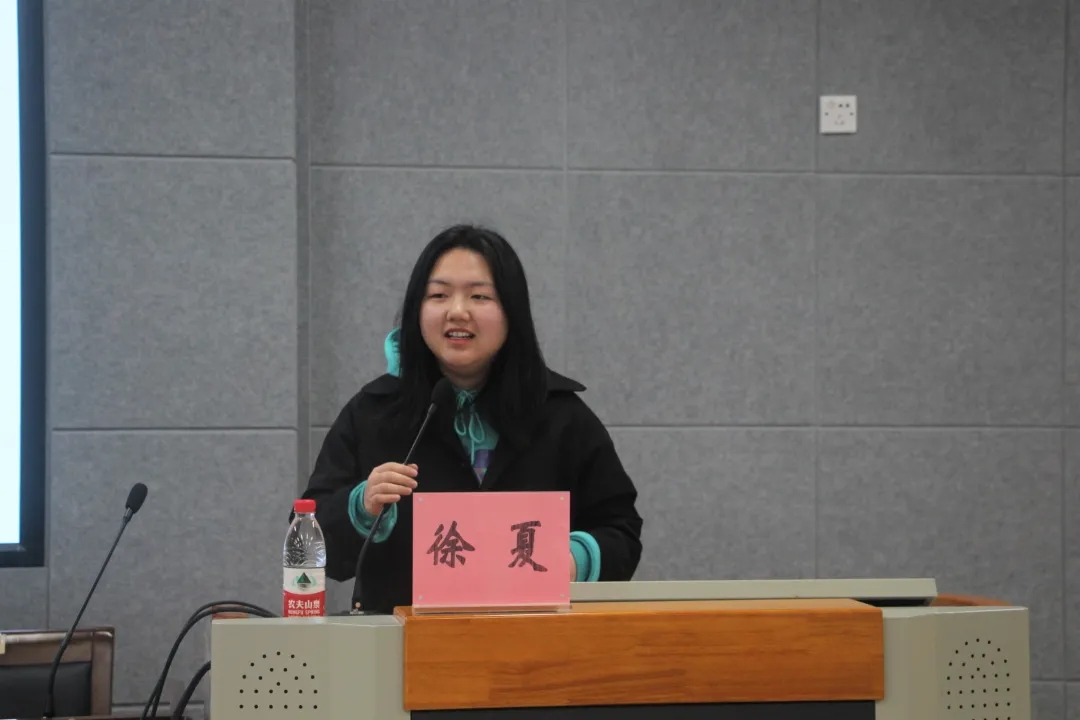 学生代表徐夏讲述了自己的比赛历程和经验。她结合自身参赛经历进行分享,她认为一旦开始就要有毅力坚持下去,过程很艰辛但结果一定会给人意想不到的惊喜。她还提到团队很重要,要有志同道合的创业伙伴,大家要充分发挥专业特长,坚定比赛决心,为共同的目标而奋斗。